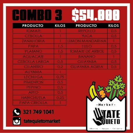 3 tipos de combos, de acuerdo al tamaño de tu familia. El precio es solo para referencia.